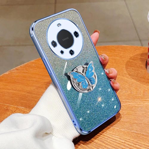 Funda TPU para Huawei Mate 60 Pro con Soporte de Mariposa y Brillo Degradado (Azul Sierra)
