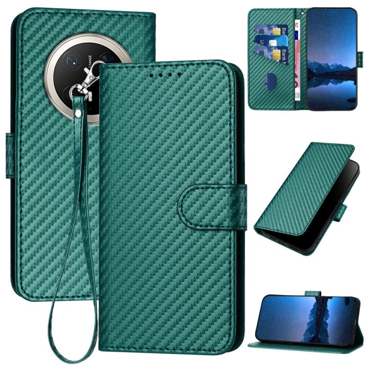 Funda de Cuero Huawei Mate 70 Pro / Mate 70 Pro+ Yx0070 con Hebilla de Fibra de Carbono y Cordón (Verde Oscuro)