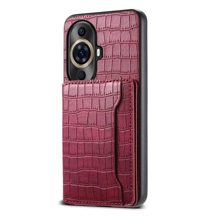 Funda para Huawei Nova 11 Pro con Diseño Bolsa para Tarjetas y Textura de Cocodrilo (Rojo)