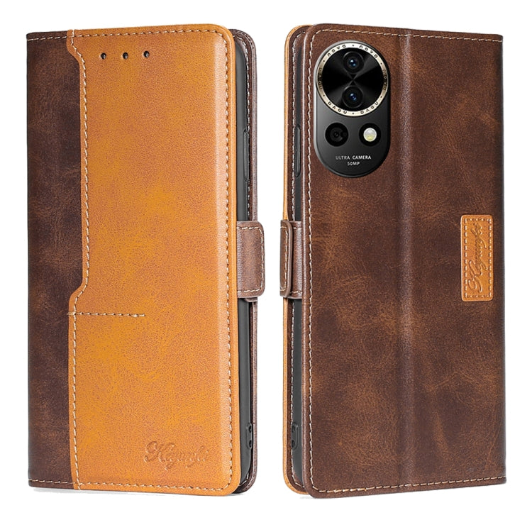 Funda de Cuero Huawei Nova 12 5G con Hebilla Lateral en Contraste (Marrón Oscuro + Dorado)
