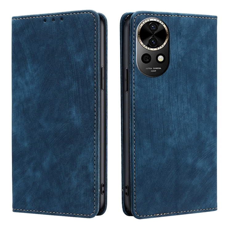 Funda de Cuero Magnética para Huawei Nova 12 5G con Rfid y Cepillo Antirrobo (Azul)