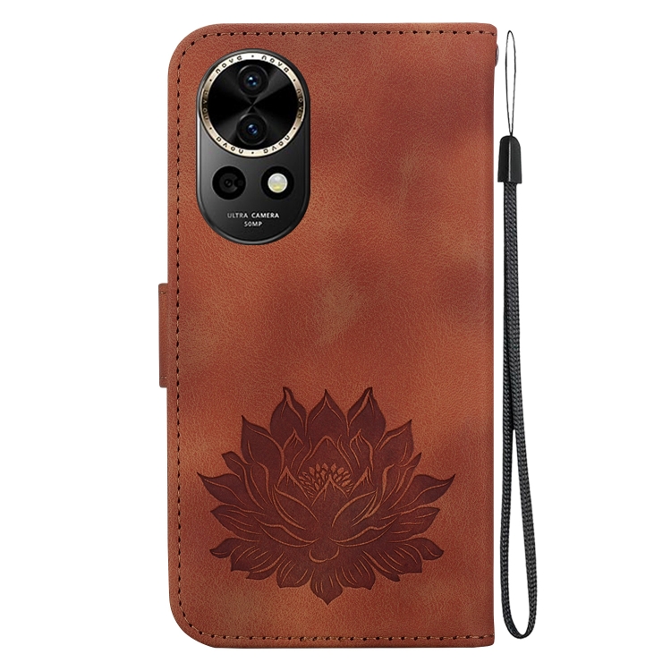 - 1x Funda de Cuero para Huawei Nova 12 con Relieve de Loto (Marrón)