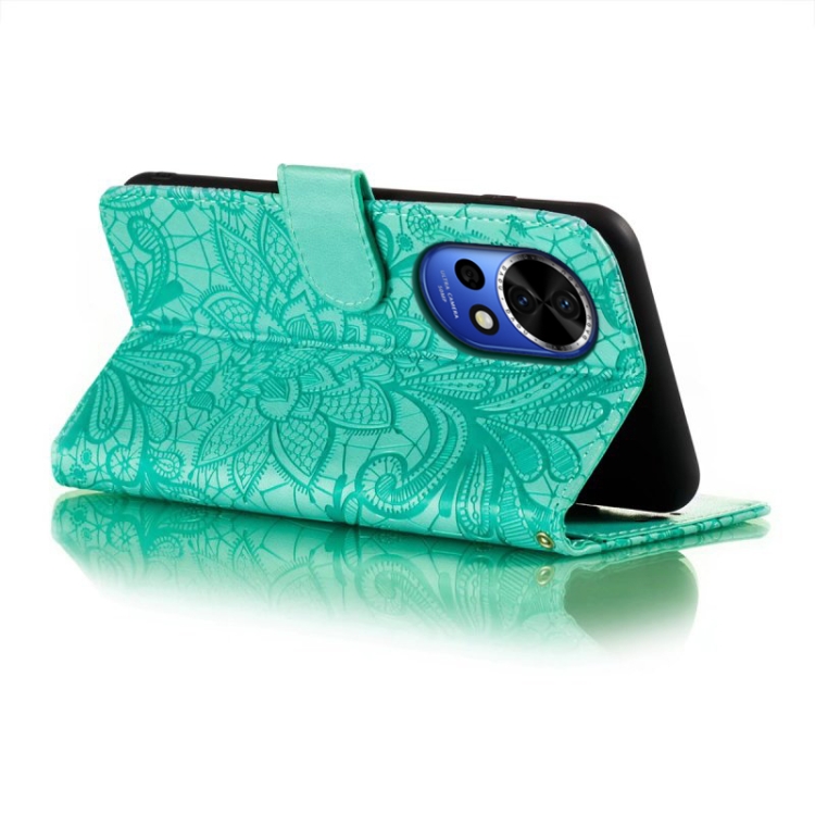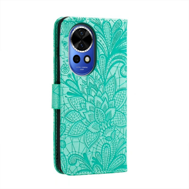 Funda de Cuero para Huawei Nova 12 con Tapa y Estampado de Flores de Encaje (Verde)