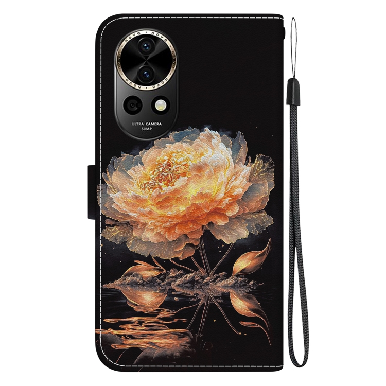 - 1x Funda de Cuero para Huawei Nova 12 con Dibujo Coloreado y Textura de Cristal (Peonía Dorada)
