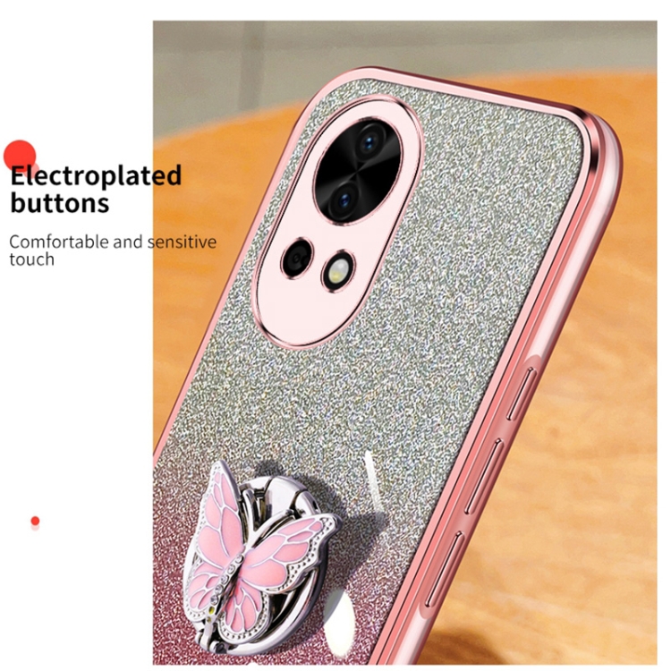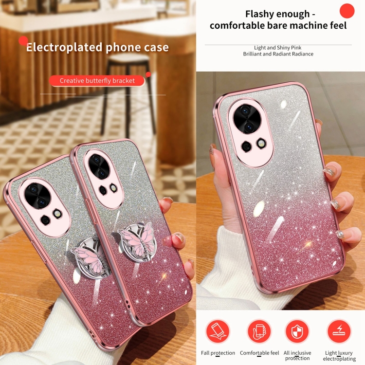 - 1x Funda para Huawei Nova 12 TPU con Soporte de Mariposa y Brillo Degradado (Plata)