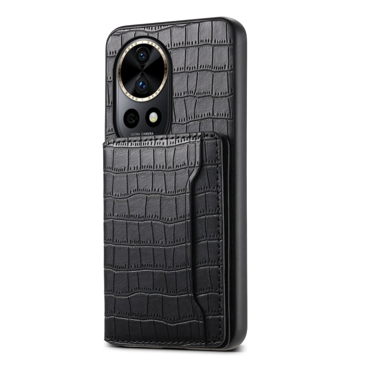 Funda para Huawei Nova 12 Pro con Diseño Bolsa para Tarjetas y Textura de Cocodrilo (Negro)