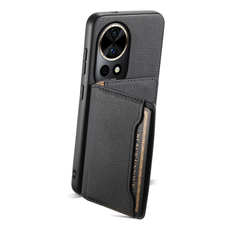 Funda para Huawei Nova 12 Pro con Diseño Bolsa para Tarjetas y Textura Pantorrilla (Negro)