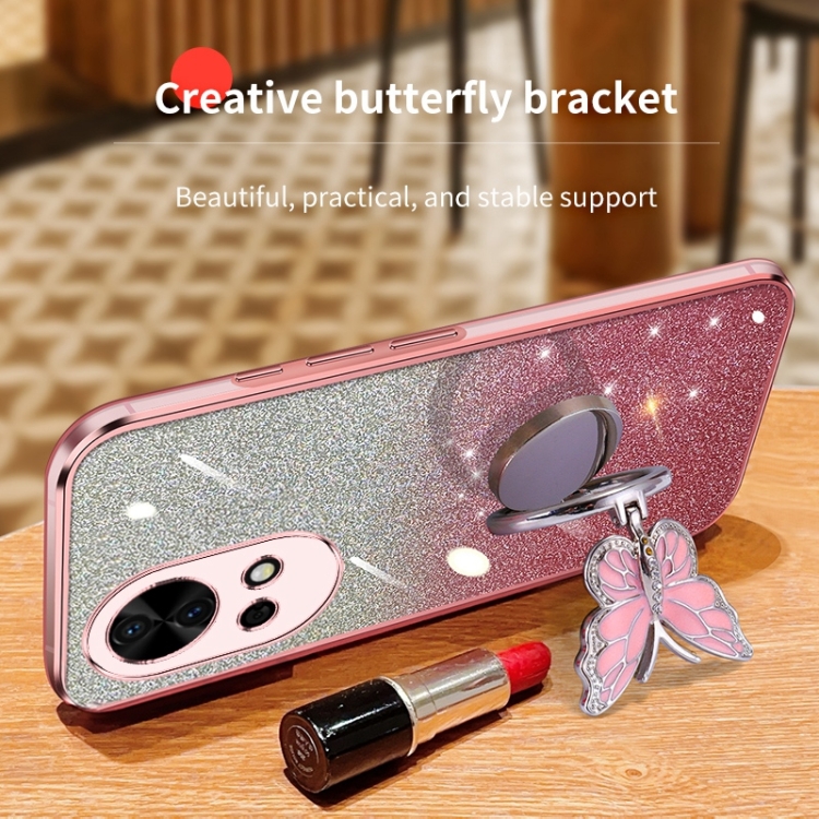 - 1x Funda para Huawei Nova 12 Pro TPU con Soporte de Mariposa y Brillo Degradado (Plata)