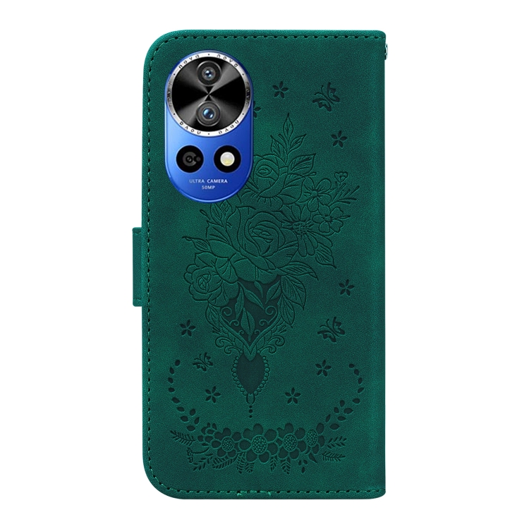 Funda de Cuero Huawei Nova 12 Pro y Nova 12 Ultra Butterfly Rose En Relieve (Verde)
