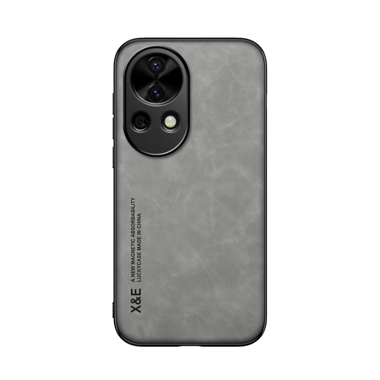 Funda para Huawei Nova 12 Pro Skin Feel con Parte Trasera de Cuero Magnético (Gris Claro)