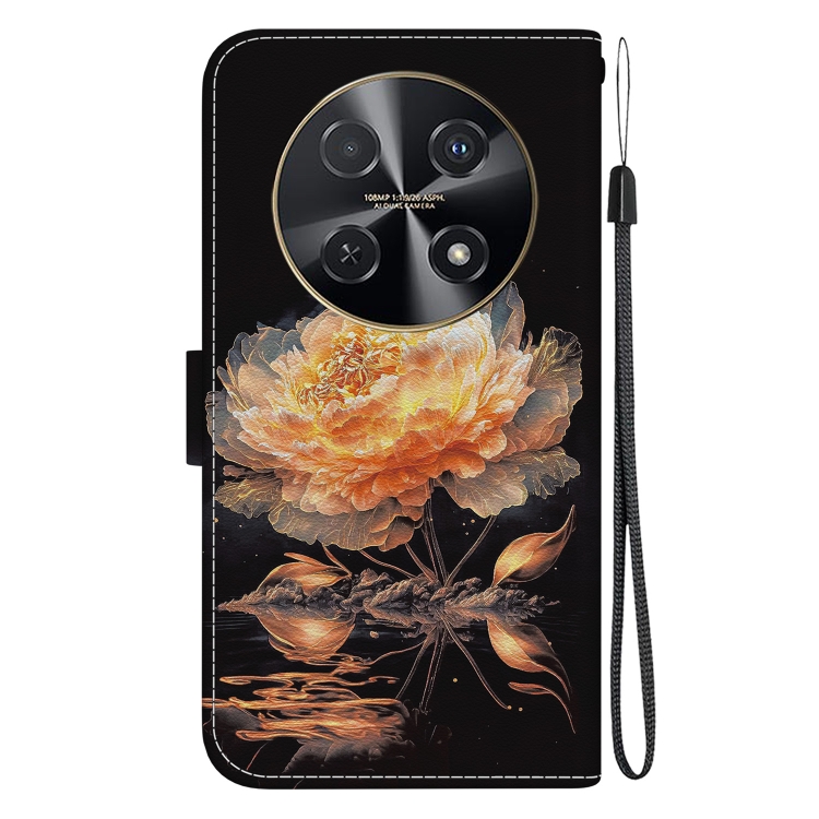 Funda de Cuero para Huawei Nova 12I 4G con Dibujo Coloreado y Textura de Cristal (Peonía Dorada)
