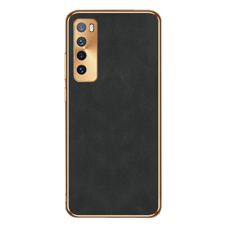 Funda de Cuero Piel de Cordero Galvanizada para Huawei Nova 7 (Negro)