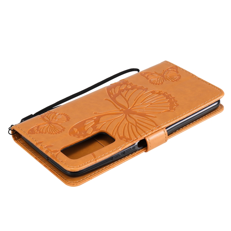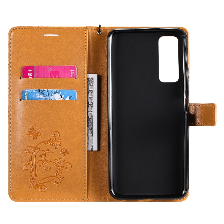 Para Huawei P Smart 2021 3D mariposas en relieve patrón de estuche horizontal Flip de cuero con soporte y ranura para tarjeta y billetera (amarillo)