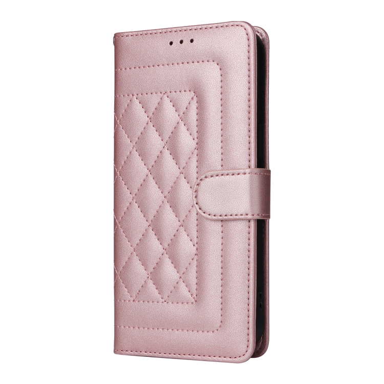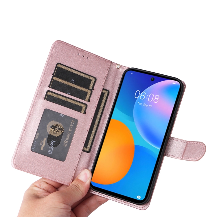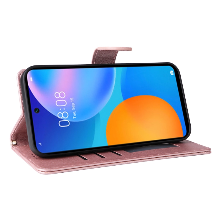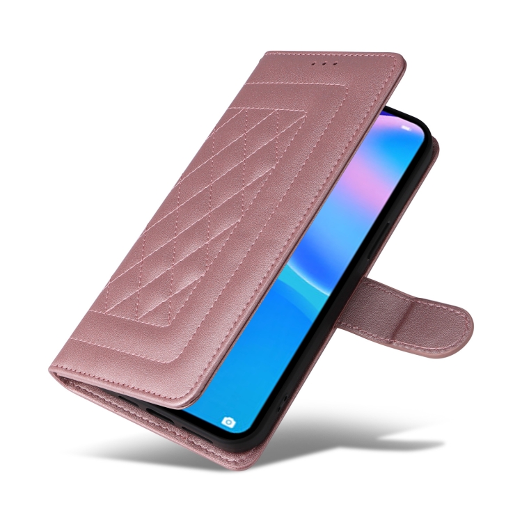 Estuche para Huawei P Smart 2021 con Tapa de Cuero y Entramado de Diamantes (Oro Rosa)