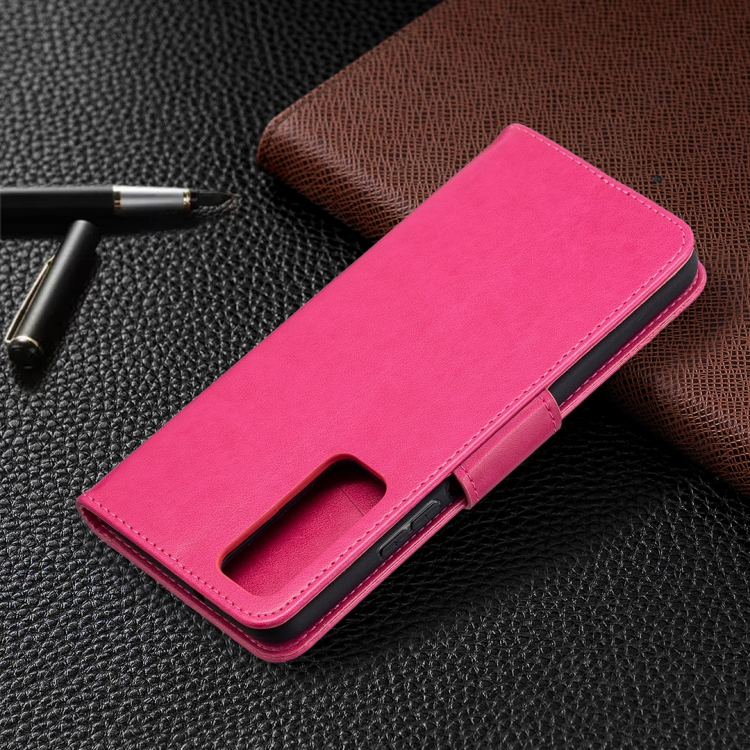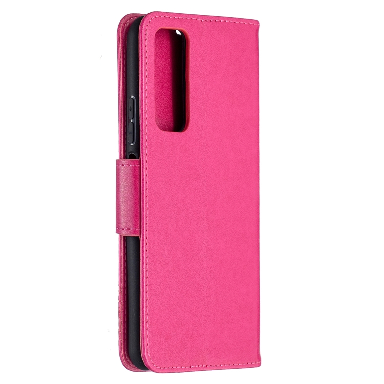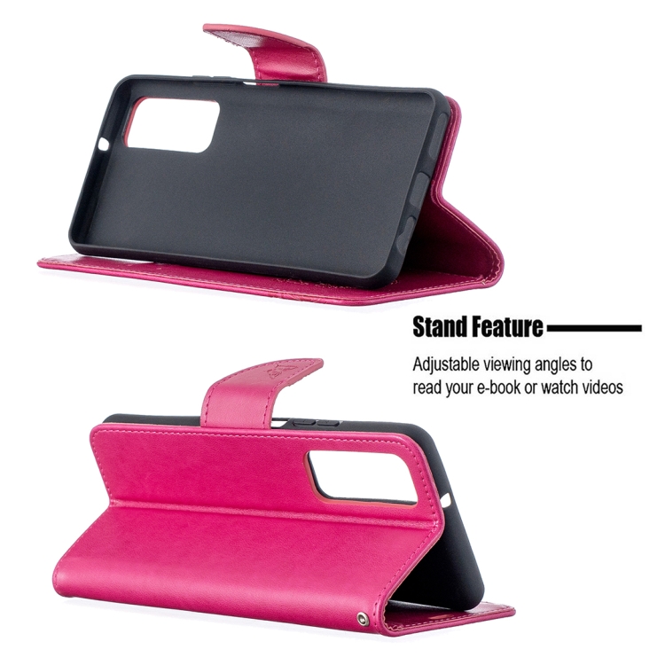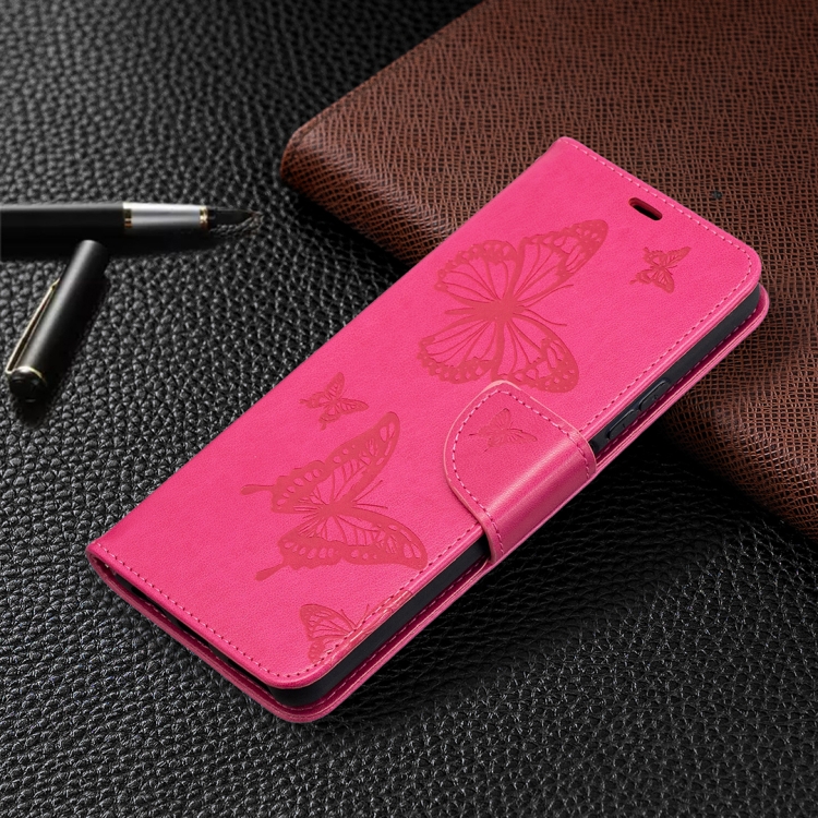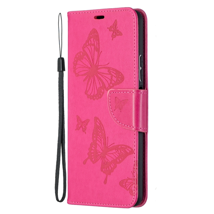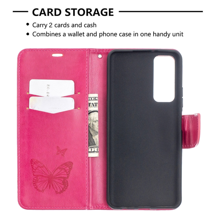Para Huawei P Smart 2021 / Y7A Dos mariposas Patrón de estampado de estampado de estampado horizontal Funda de cuero con soporte y ranura para tarjeta y billetera y cordón (Rose Rojo)