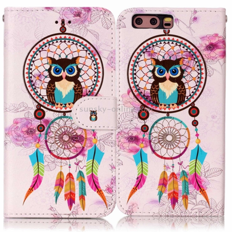 Funda de Cuero para Huawei P10 con Tapa Horizontal, Soporte, Ranuras para Tarjetas y Marco de Fotos (Búho)