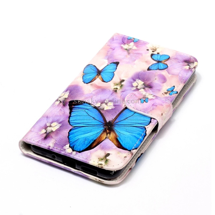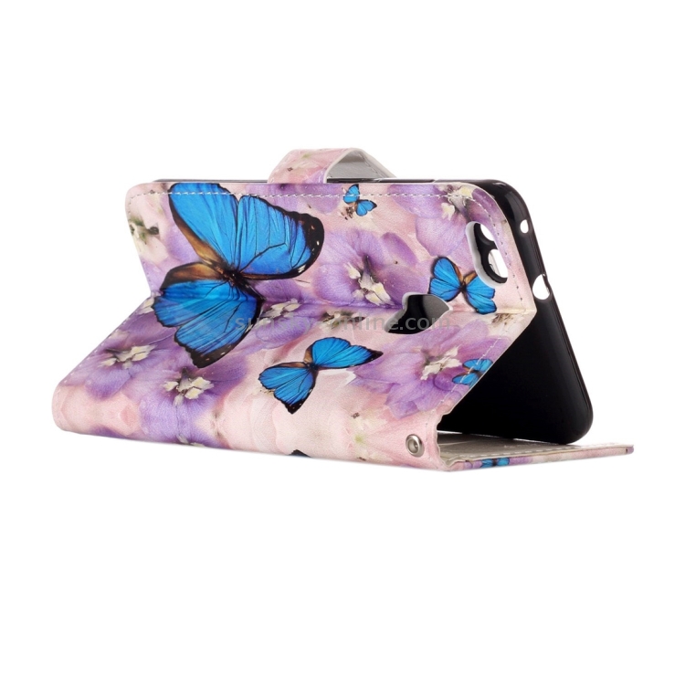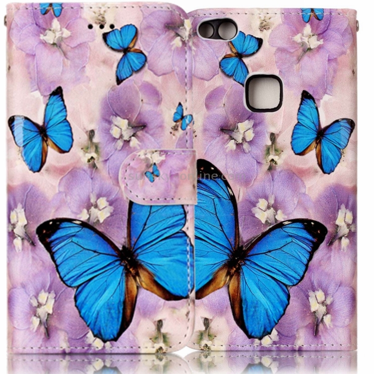 Funda de Cuero para Huawei P10 Lite con Tapa Horizontal, Soporte, Ranuras y Marco de Fotos (Morada)