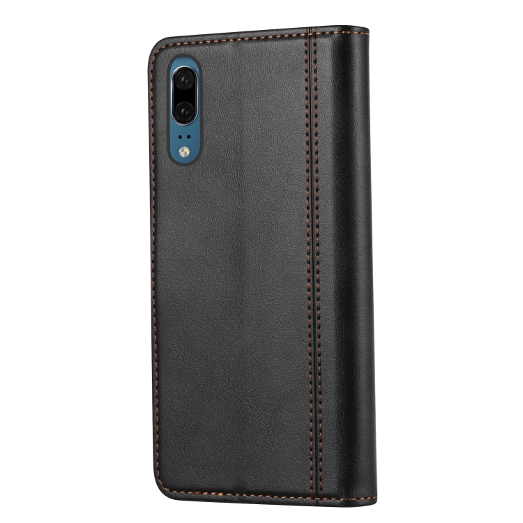 Para Huawei P20 Estuche de cuero con cierre de doble pliegue horizontal con textura de becerro con marco de fotos, soporte, ranuras para tarjetas y billetera (negro)