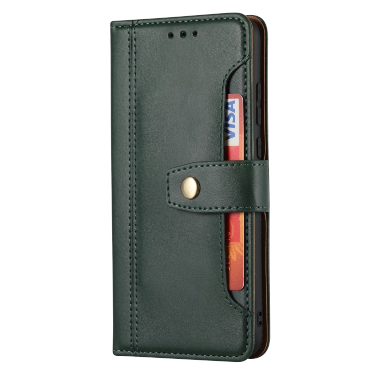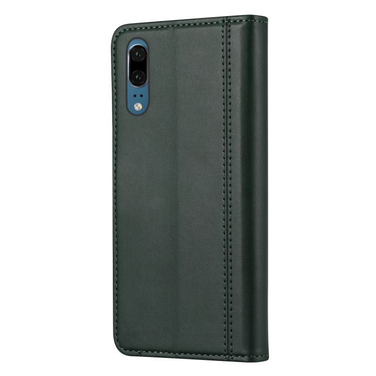 Para Huawei P20 Textura de becerro Cierre de doble pliegue horizontal Funda de cuero con tapa con marco de fotos y soporte y ranuras para tarjetas y billetera (verde)