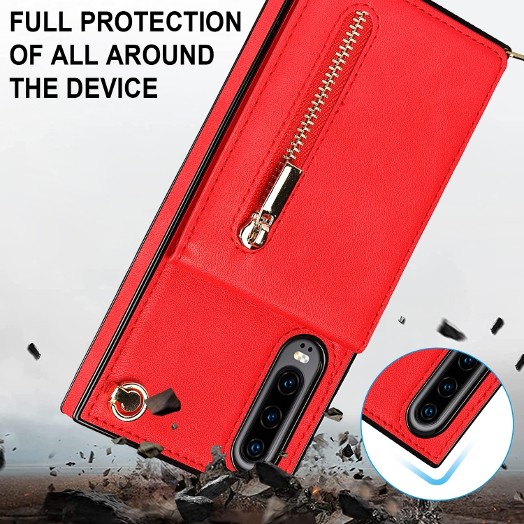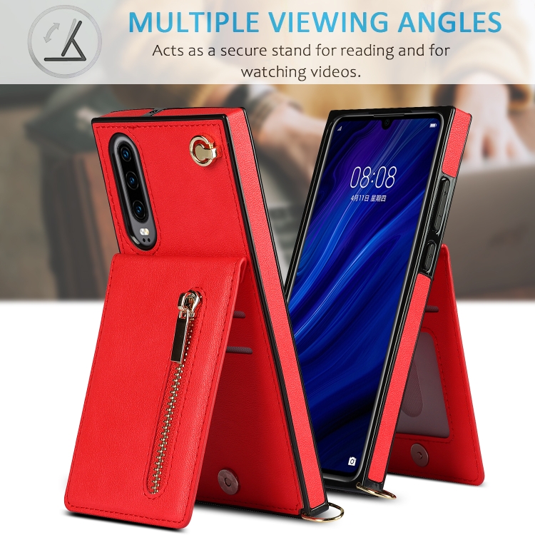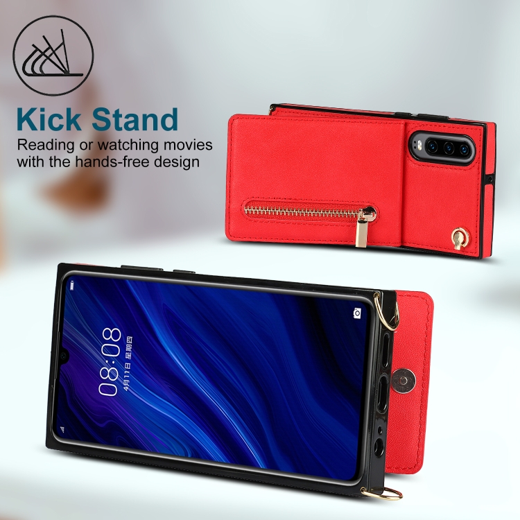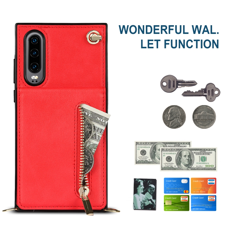 Para Huawei P30 Cross-Body Zipper Square TPU + PU Funda trasera con soporte y ranuras para tarjetas y correa (rojo)