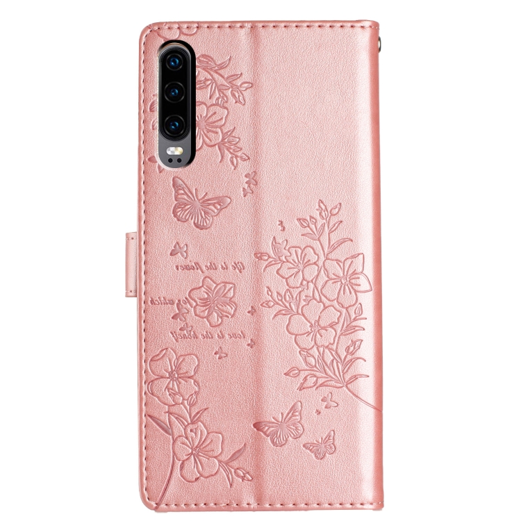 - 1x Funda de Cuero para Huawei P30 con Relieve de Flor de Amor y Mariposa (Oro Rosa)