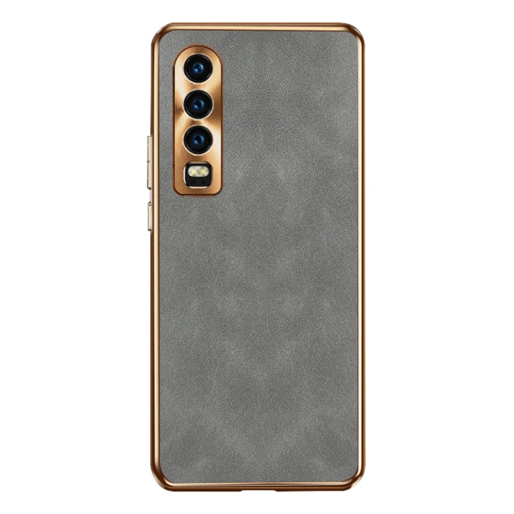 Funda de Cuero Piel de Cordero para Huawei P30 Galvanizada (Gris)
