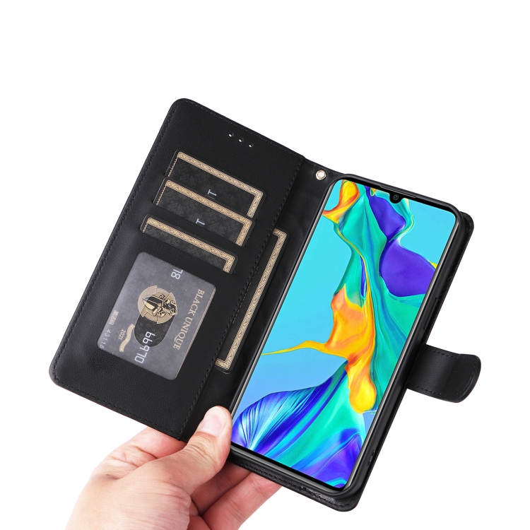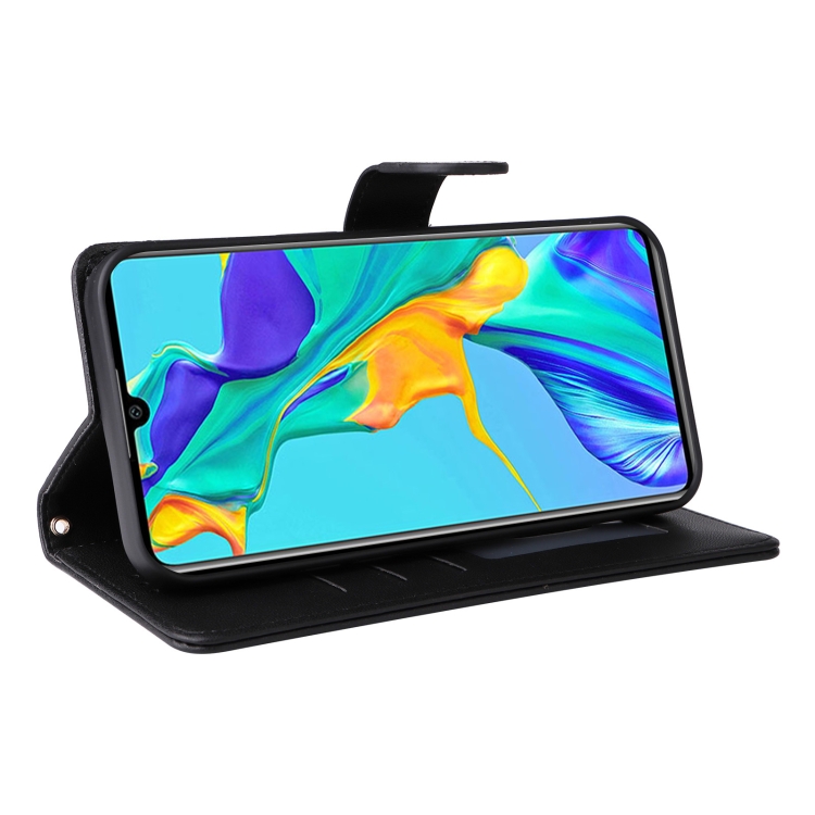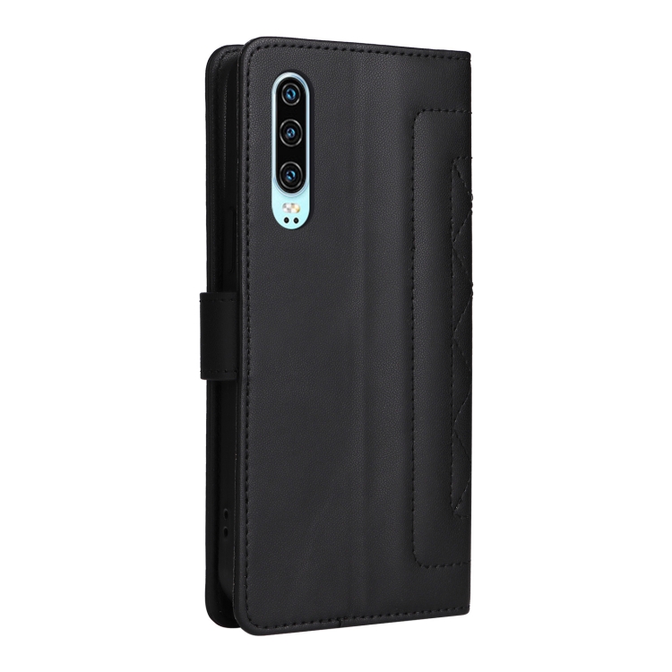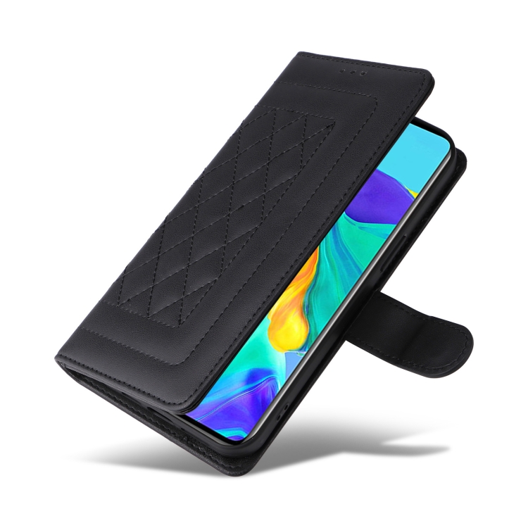 Funda de Teléfono Huawei P30 con Tapa de Cuero Diamond Lattice (Negro)