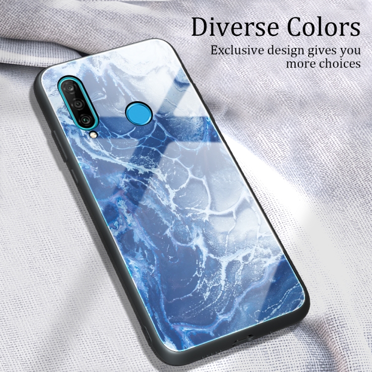 Para Huawei P30 lite / nova 4e Funda protectora de vidrio con patrón de mármol (DL03)