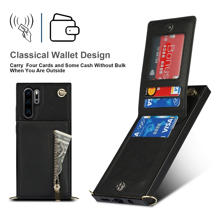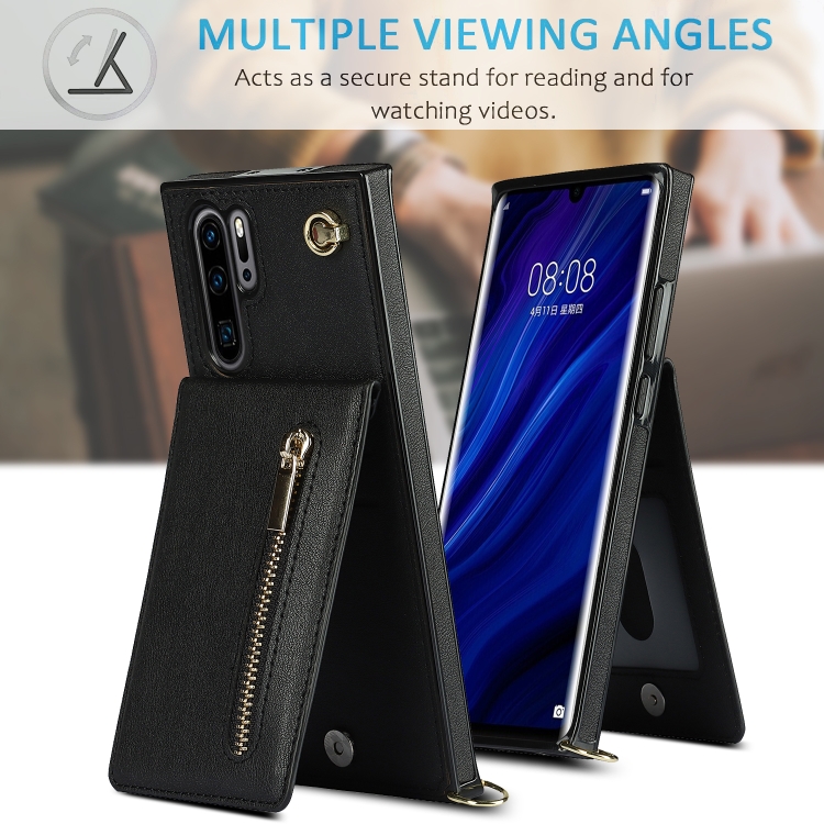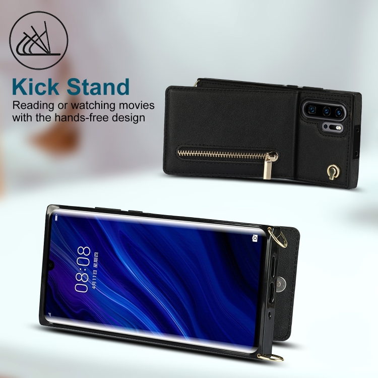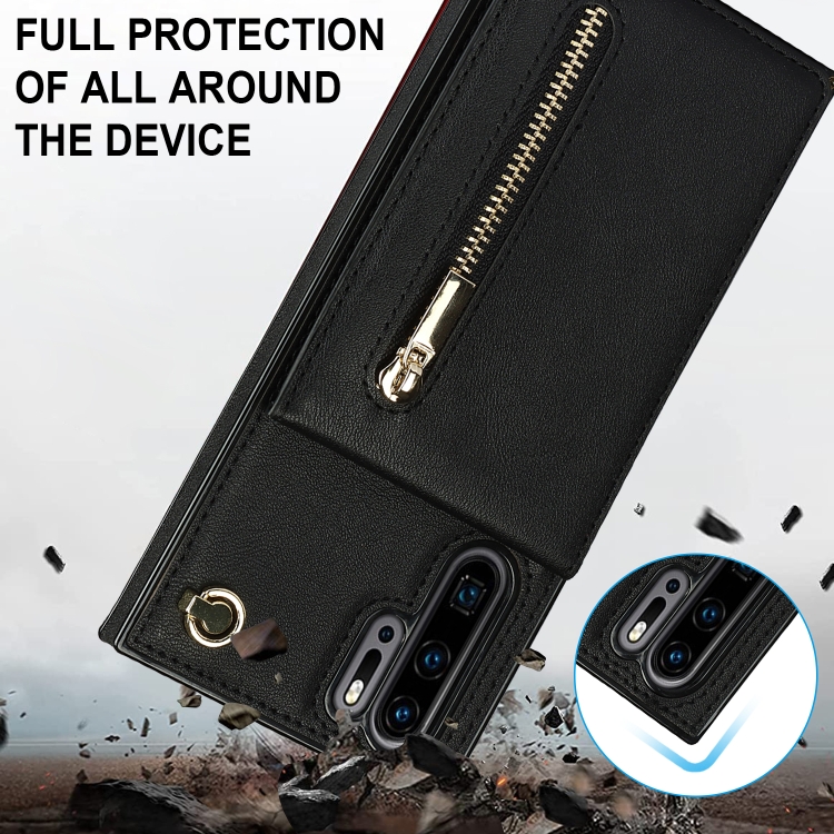 Para Huawei P30 Pro Cross-Body Zipper Square TPU + PU Funda trasera con soporte y tragamonedas y billetera y correa (Negro)