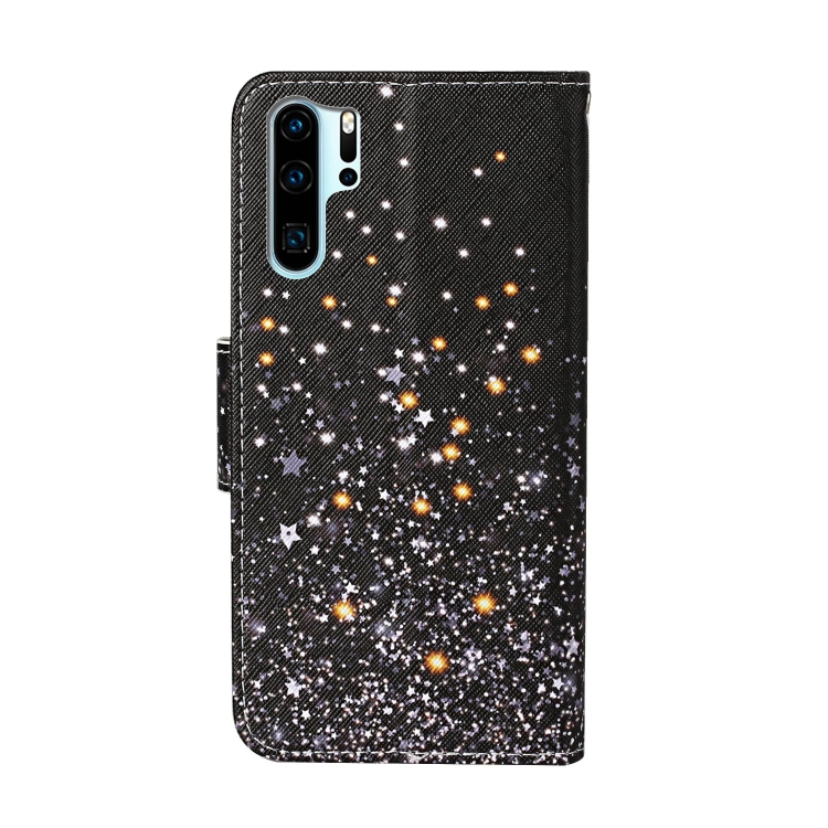Para Huawei P30 Pro Funda de cuero con tapa horizontal con patrón de dibujo en color con soporte, ranuras para tarjetas y billetera (Black Star)