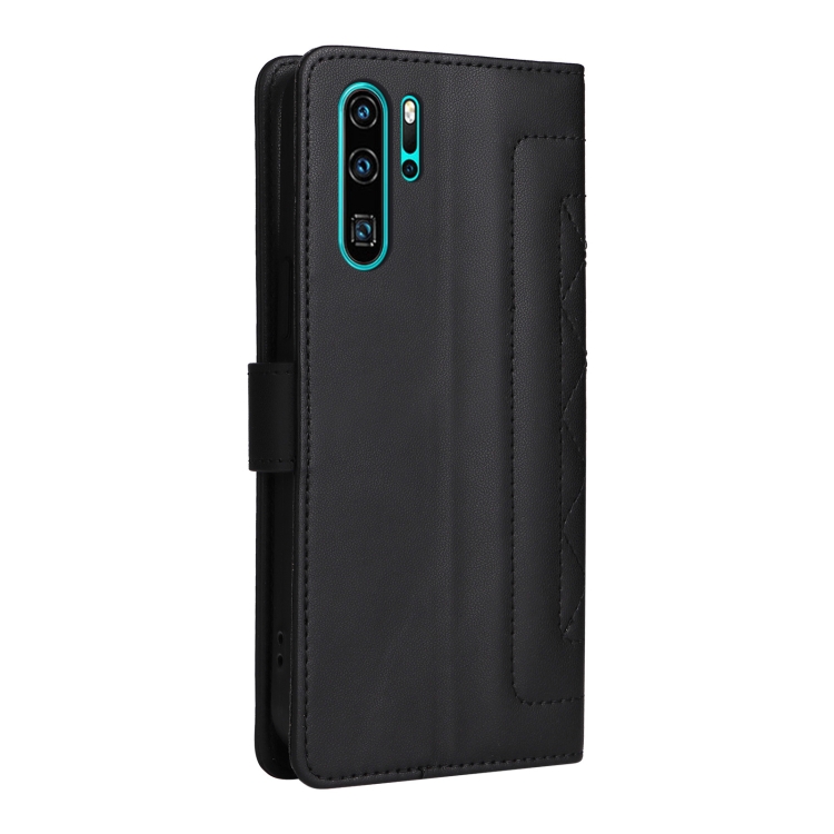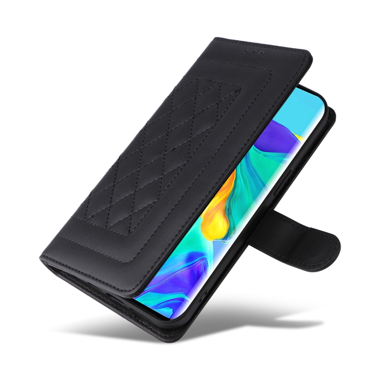 Funda de Teléfono Huawei P30 Pro con Tapa de Cuero Diamond Lattice (Negro)