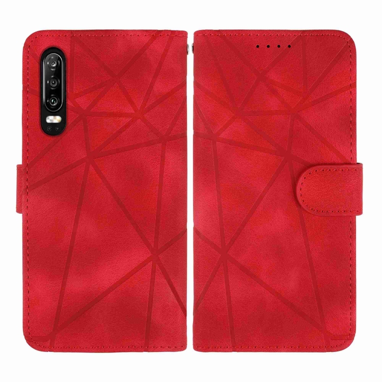 - 1x Funda de Cuero para Huawei P30 con Líneas Geométricas (Rojo)