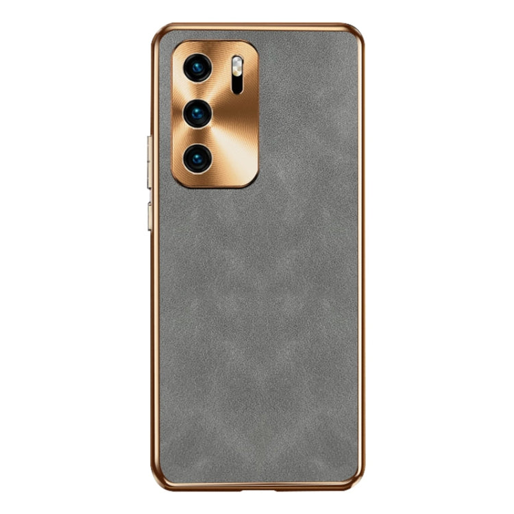 Funda de Cuero Piel de Cordero Galvanizada para Huawei P40 (Gris)