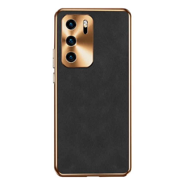 Funda para Huawei P40 de Cuero Piel de Cordero Galvanizada (Negro)