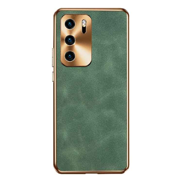 Funda para Huawei P40 de Cuero Piel de Cordero Galvanizada (Verde)