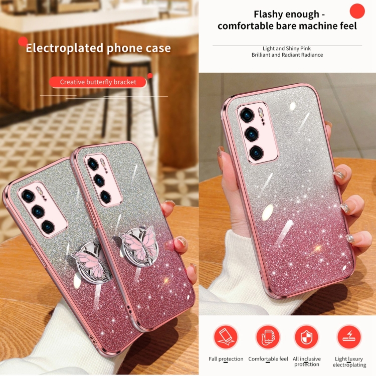 - 1x Funda TPU para Huawei P40 con Soporte de mariposa y brillo degradado (Plata)