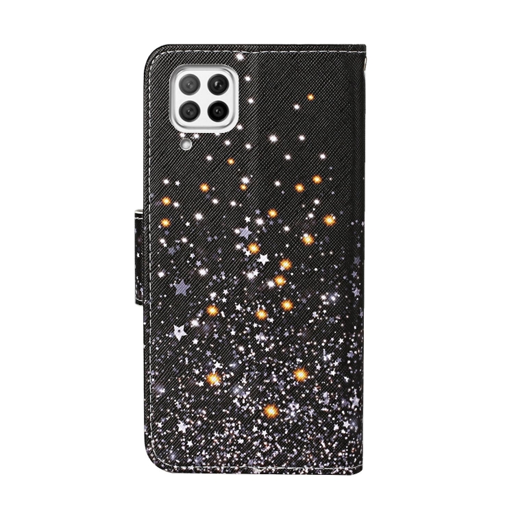 Para Huawei P40 Lite Funda de cuero abatible horizontal con patrón de dibujo coloreado con soporte, ranuras para tarjetas y billetera (estrella negra)