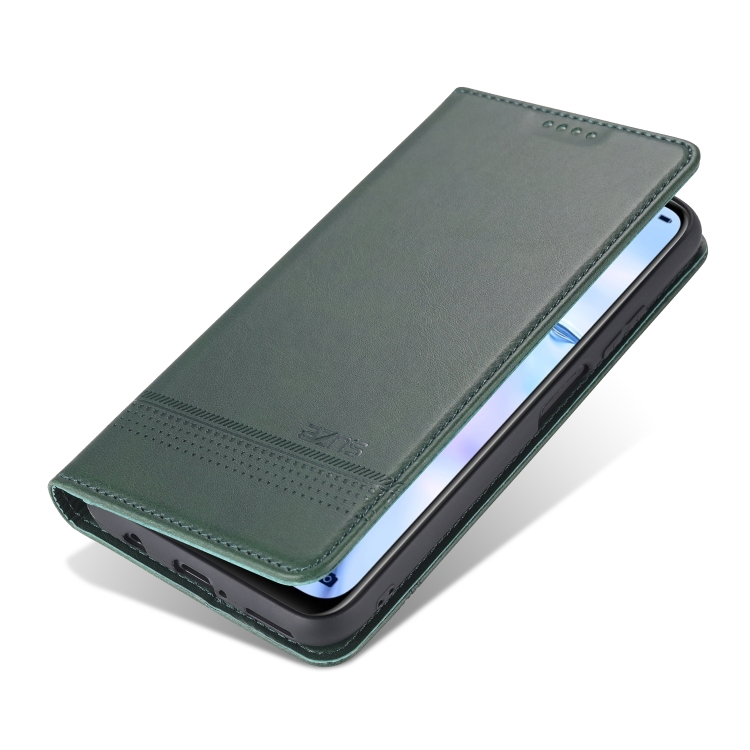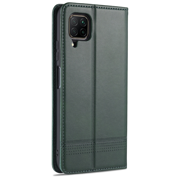 Para Huawei P40 Lite / nova 6 SE AZNS Estuche de cuero con tapa magnética con textura de becerro horizontal con ranuras para tarjetas, soporte y billetera (verde oscuro)