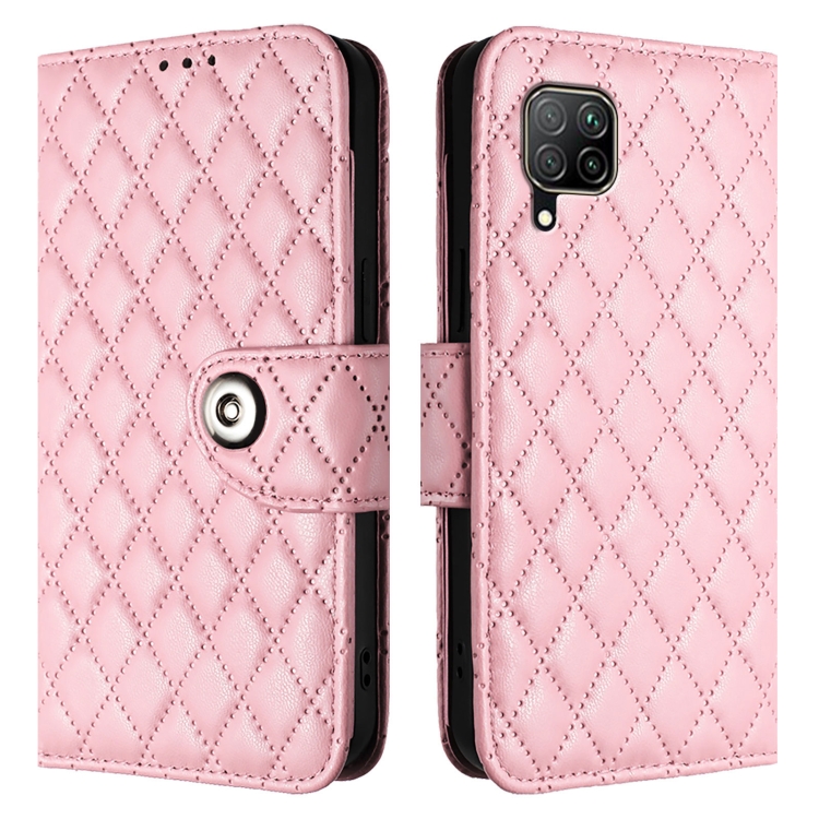 Funda para Huawei P40 Lite y Nova 6 Se con Tapa de Cuero, Textura Rómbica y Cordón (Rosa)