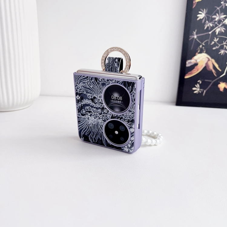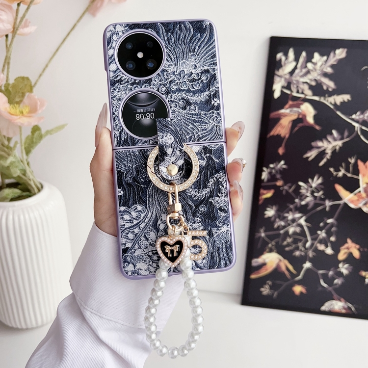 Funda para Huawei P50 Cobertura Total Bordado con Cadena de Cuentas de Anillo (Azul)