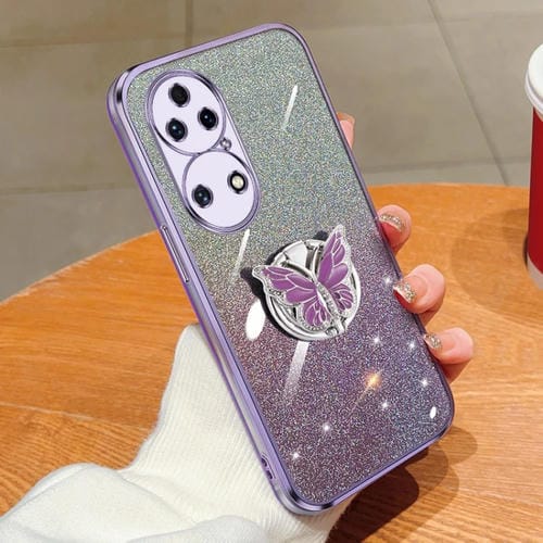 - 1x Funda TPU para Huawei P50 con Soporte de mariposa y brillo degradado Plateado (Púrpura)