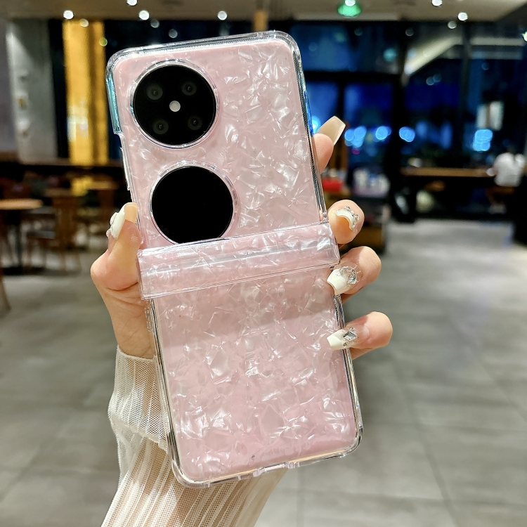 Estuche para Huawei P50 Pocket Juego de Tres Piezas con Textura de Concha Nacarada (Rosa)
