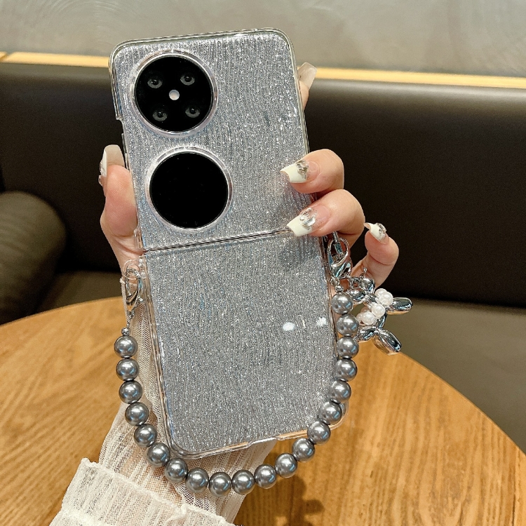 Estuche para Huawei P50 Pocket PC con Hebilla Lateral, Cobertura Total, Papel Brillante y Pulsera (Plata)