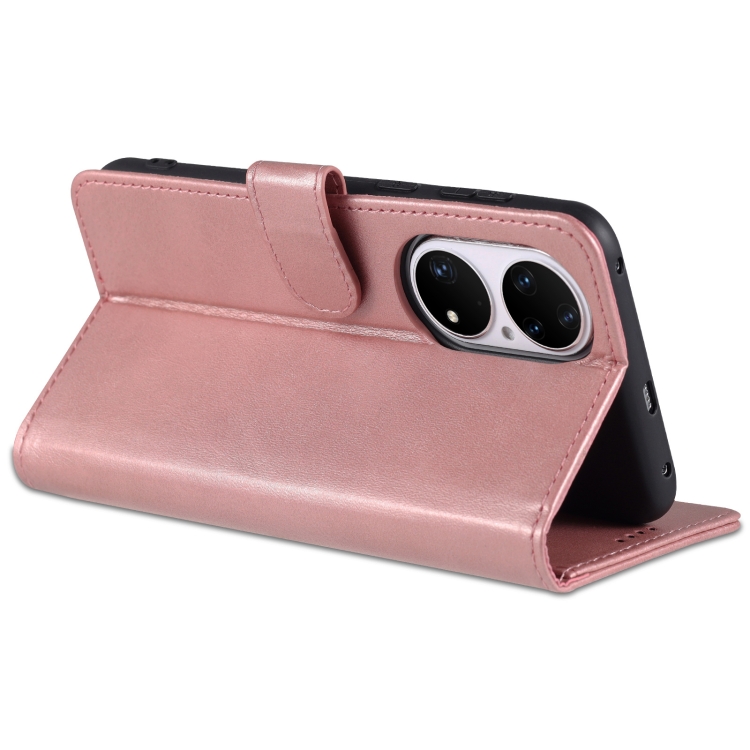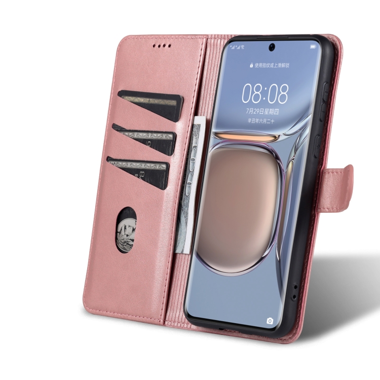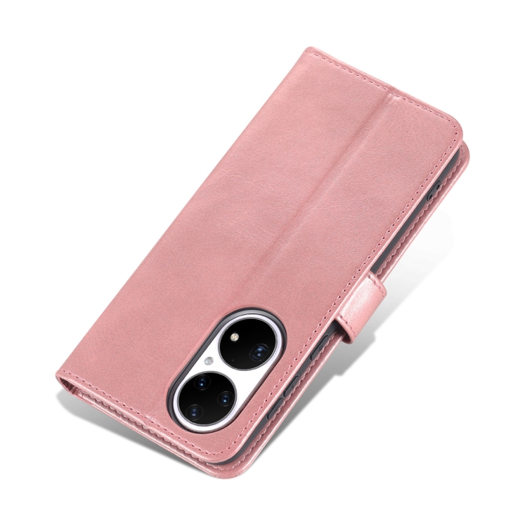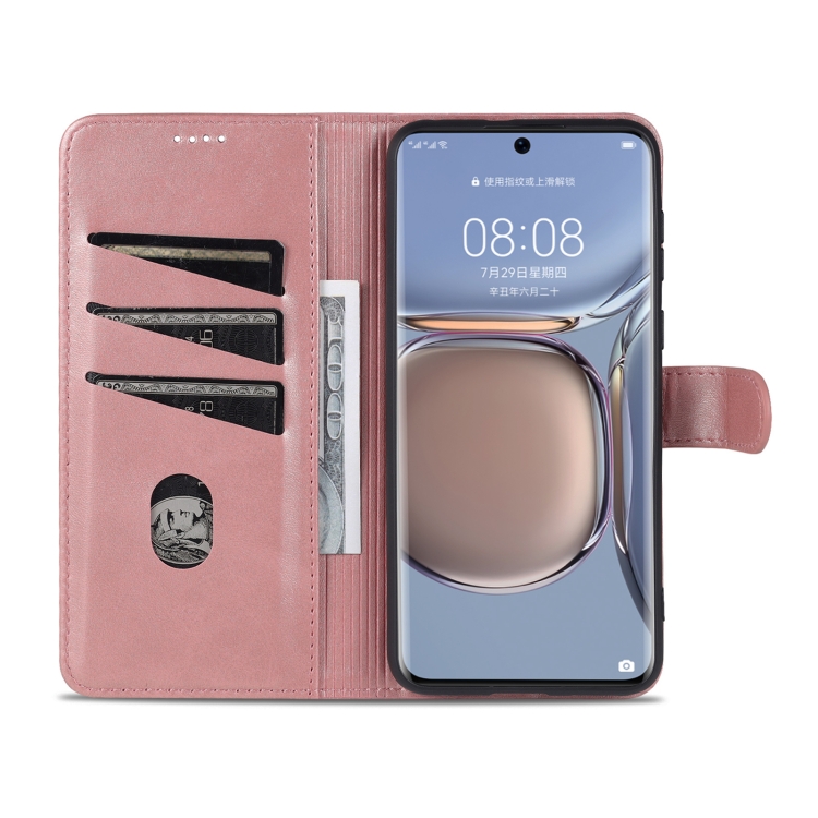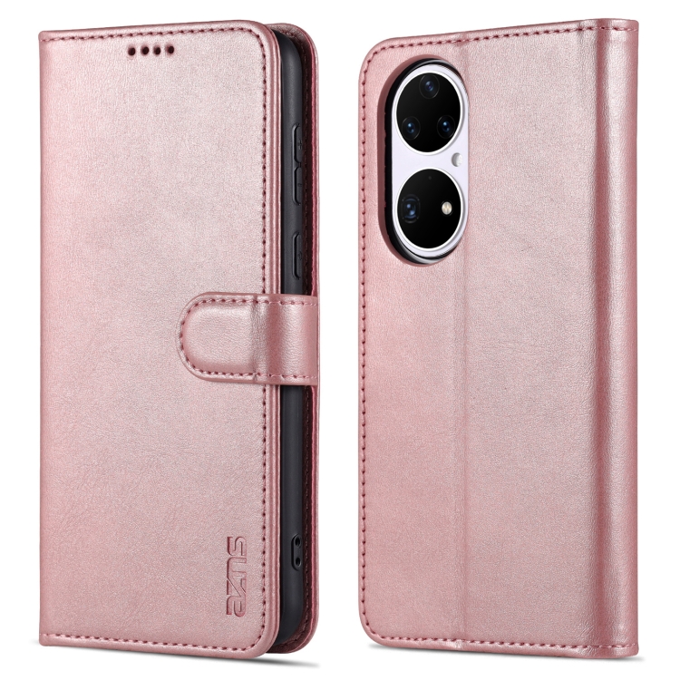 Para Huawei P50 Pro AZNS Siente la piel de la piel de la piel de la carne de cuero Horizontal Flip Funda con ranuras y soporte para tarjetas y billetera (oro rosa)