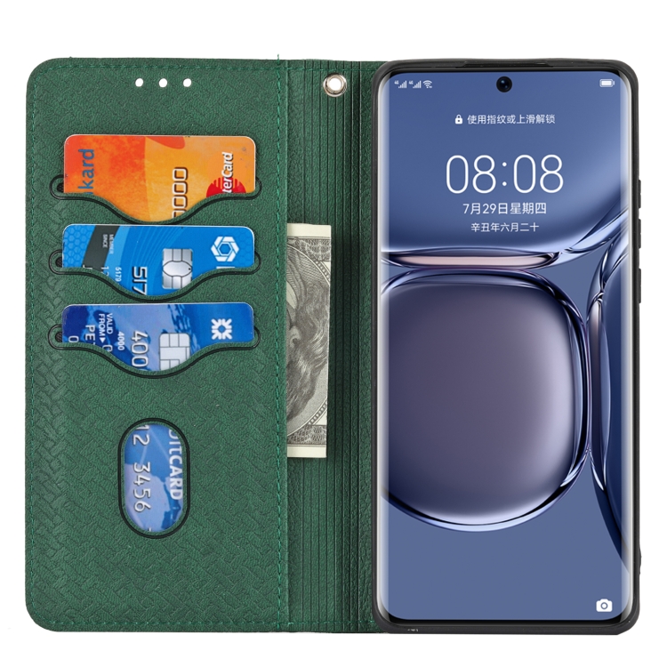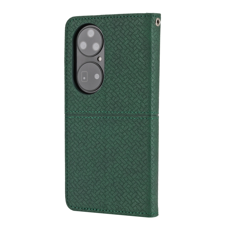 Para Huawei P50 Pro Textura Textura Textura Magnética Funda de cuero Horizontal Flip PU con soporte y ranuras para tarjetas y Billetera y cordón (verde)