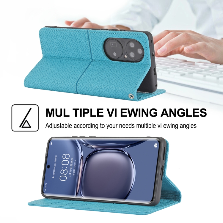 Para Huawei P50 Textura Textura Magnética Funda de cuero Horizontal Flip PU con soporte y ranuras para tarjetas y Filtera (Azul)