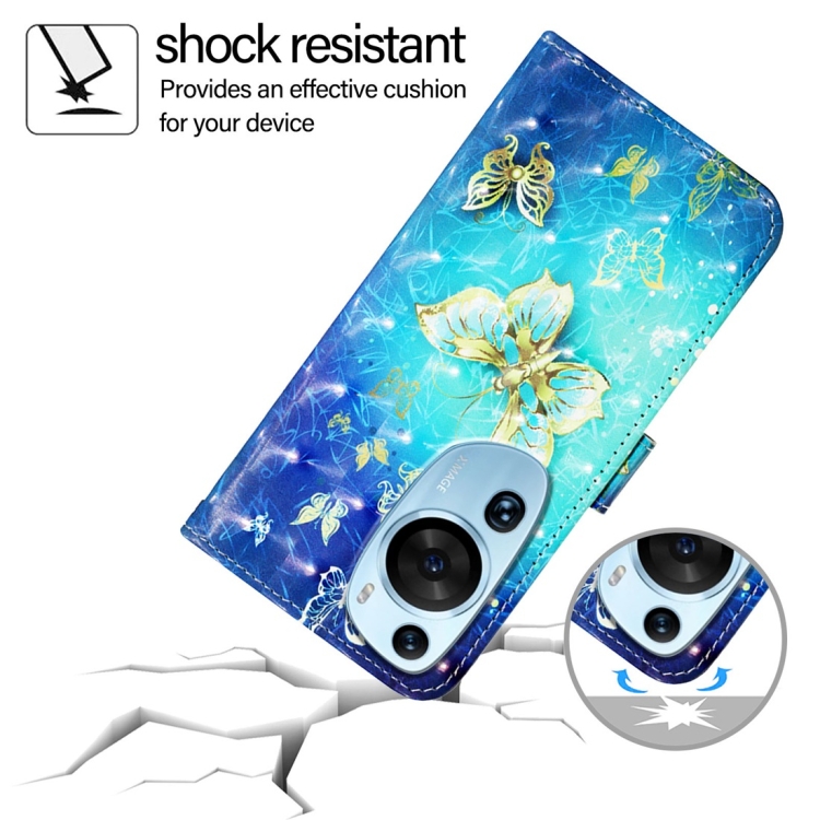 - 1x Funda de Cuero para Huawei P60 Art 3D Painting con Tapa Horizontal (Mariposa Dorada)