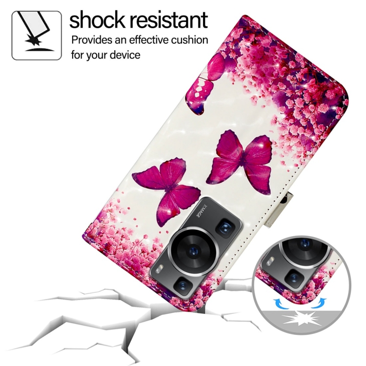 • 1x Funda de Cuero para Huawei P60 con Tapa Horizontal y Pintura 3D (Mariposa Rosa)