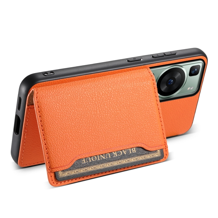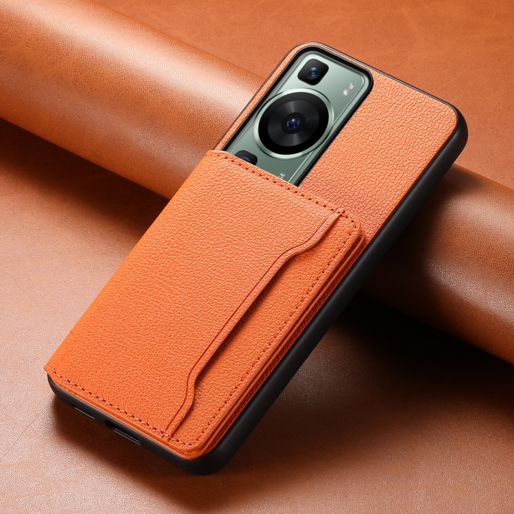 Funda para Huawei P60 con Diseño de Bolsa de Tarjeta y Textura de Pantorrilla (Naranja)