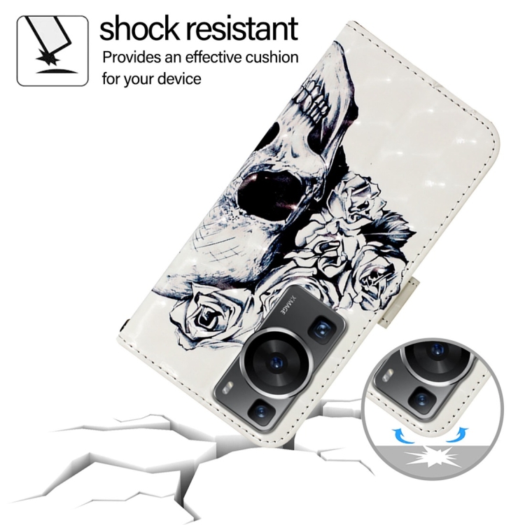 - 1x Funda de Cuero para Huawei P60 Pro con Tapa Horizontal y Pintura 3D (Calavera)